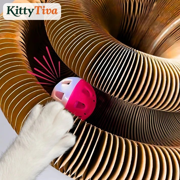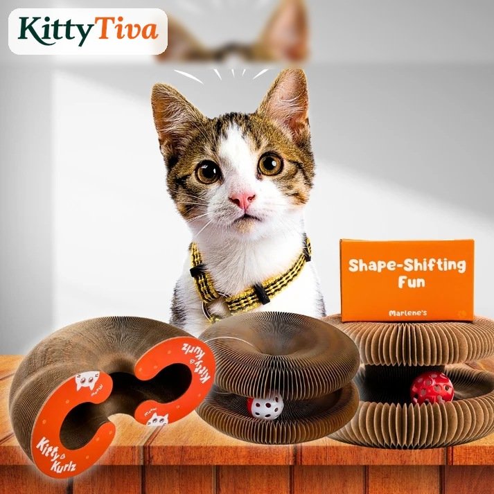 KittyTiva's signature shape-shifting scratcher, ball track, and cozy bed — all in one. Keeps cats mentally and physically engaged for hours.