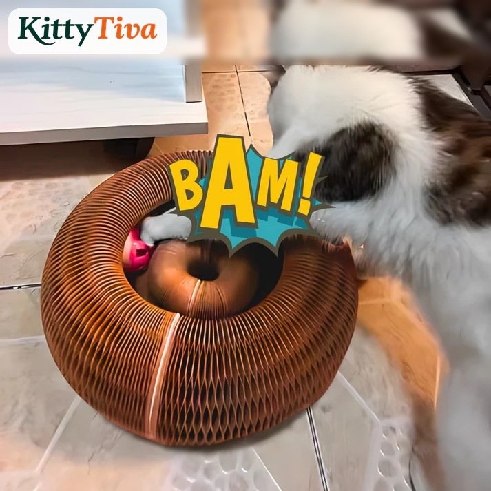 KittyTiva's signature shape-shifting scratcher, ball track, and cozy bed — all in one. Keeps cats mentally and physically engaged for hours.